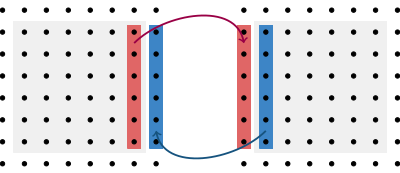 A single boundary communication between two 2D local lattices would accordingly work as in the following illustration