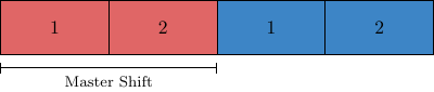 . Due to the even-odd preconditioning the blocks are further split up into two. The field local_master_pieces identifies the number of local master pieces. In this case the integer saved in local_master_pieces is equal to four. This is saved in memory in the following way: First the even parts of the two blocks and then the odd parts.
